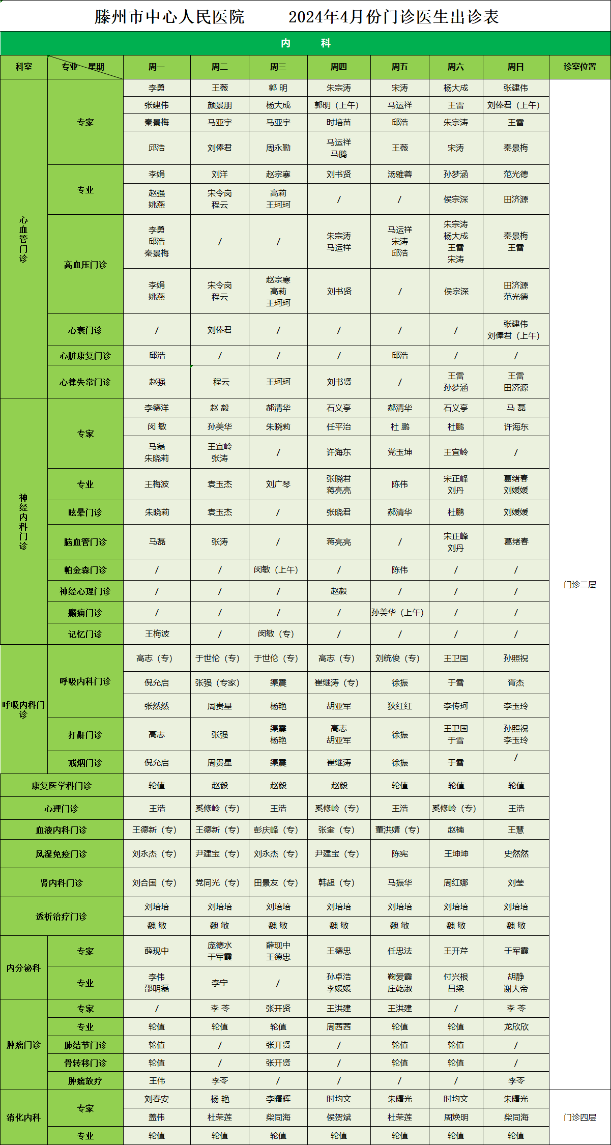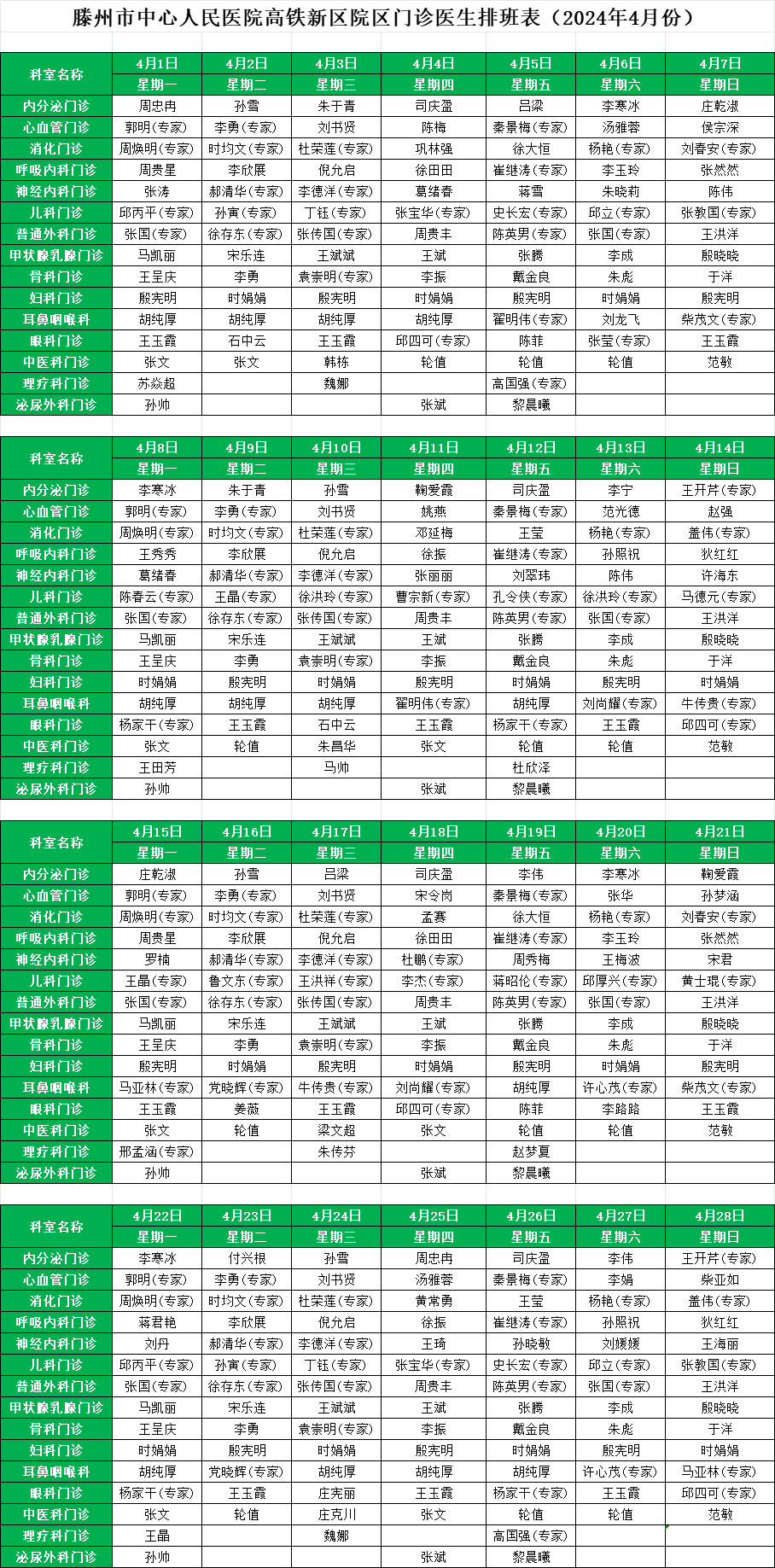 關(guān)注 | 滕州市中心人民醫(yī)院4月份專家、專業(yè)門診排班表