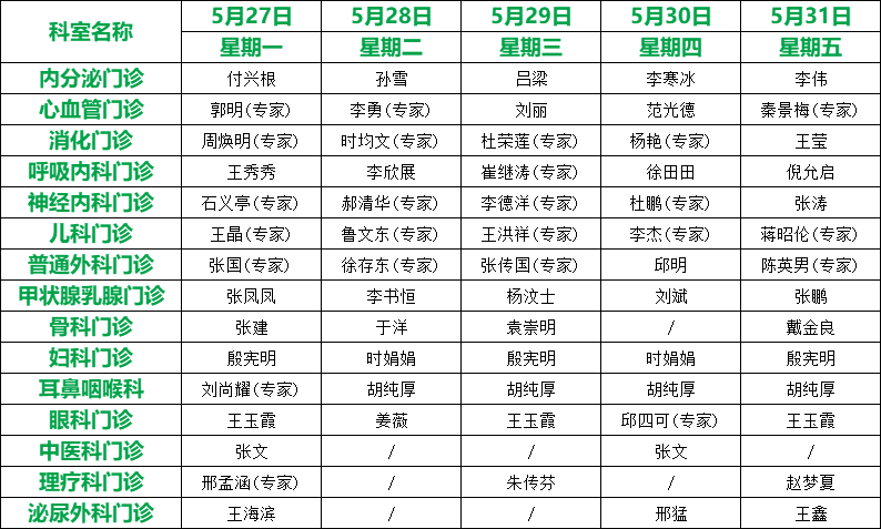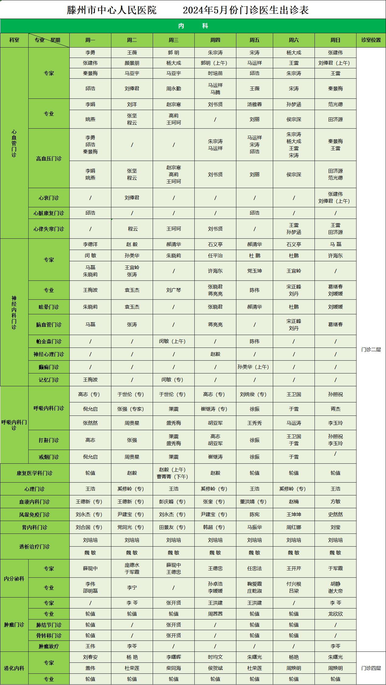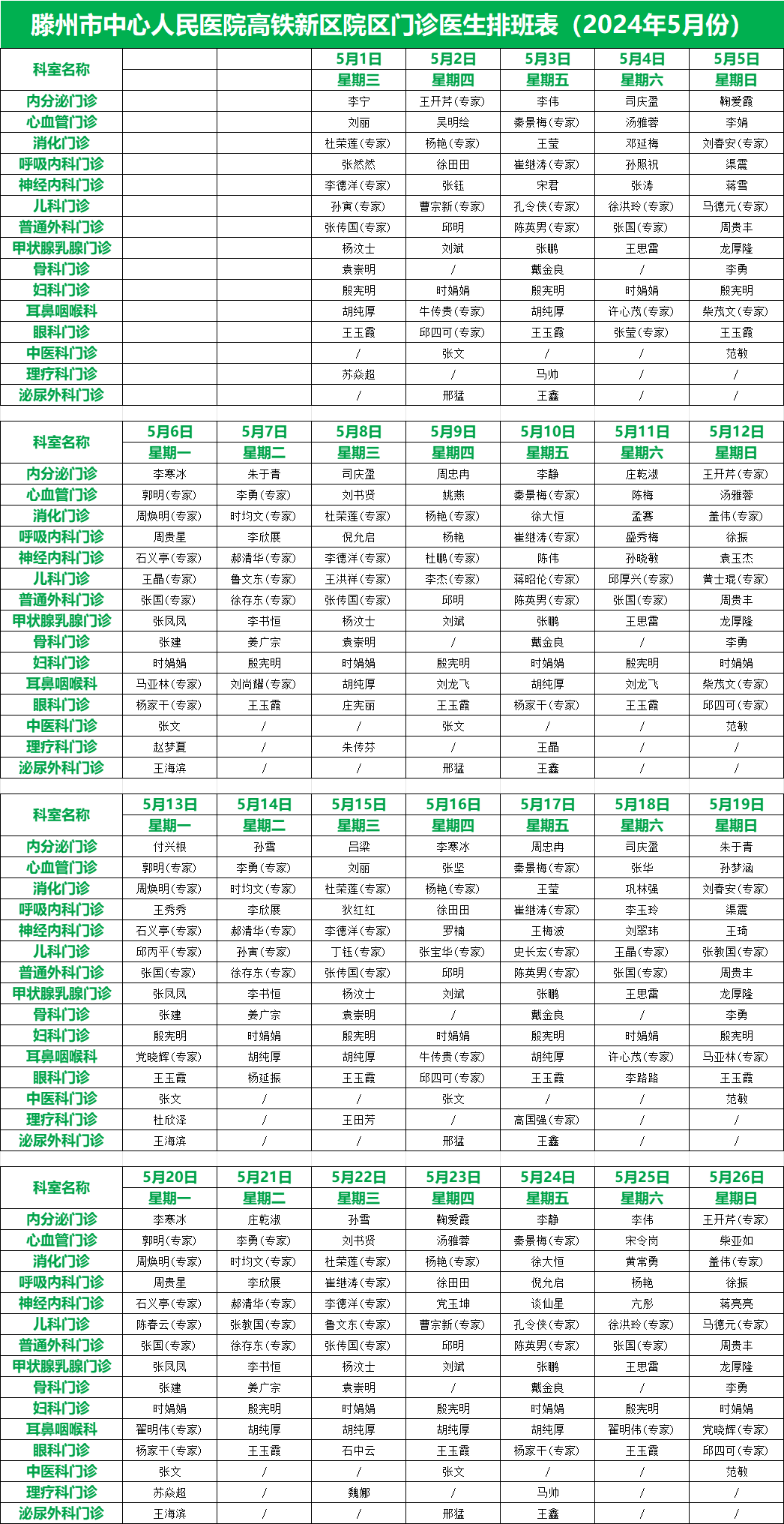 關注 | 滕州市中心人民醫(yī)院5月份專家、專業(yè)門診排班表