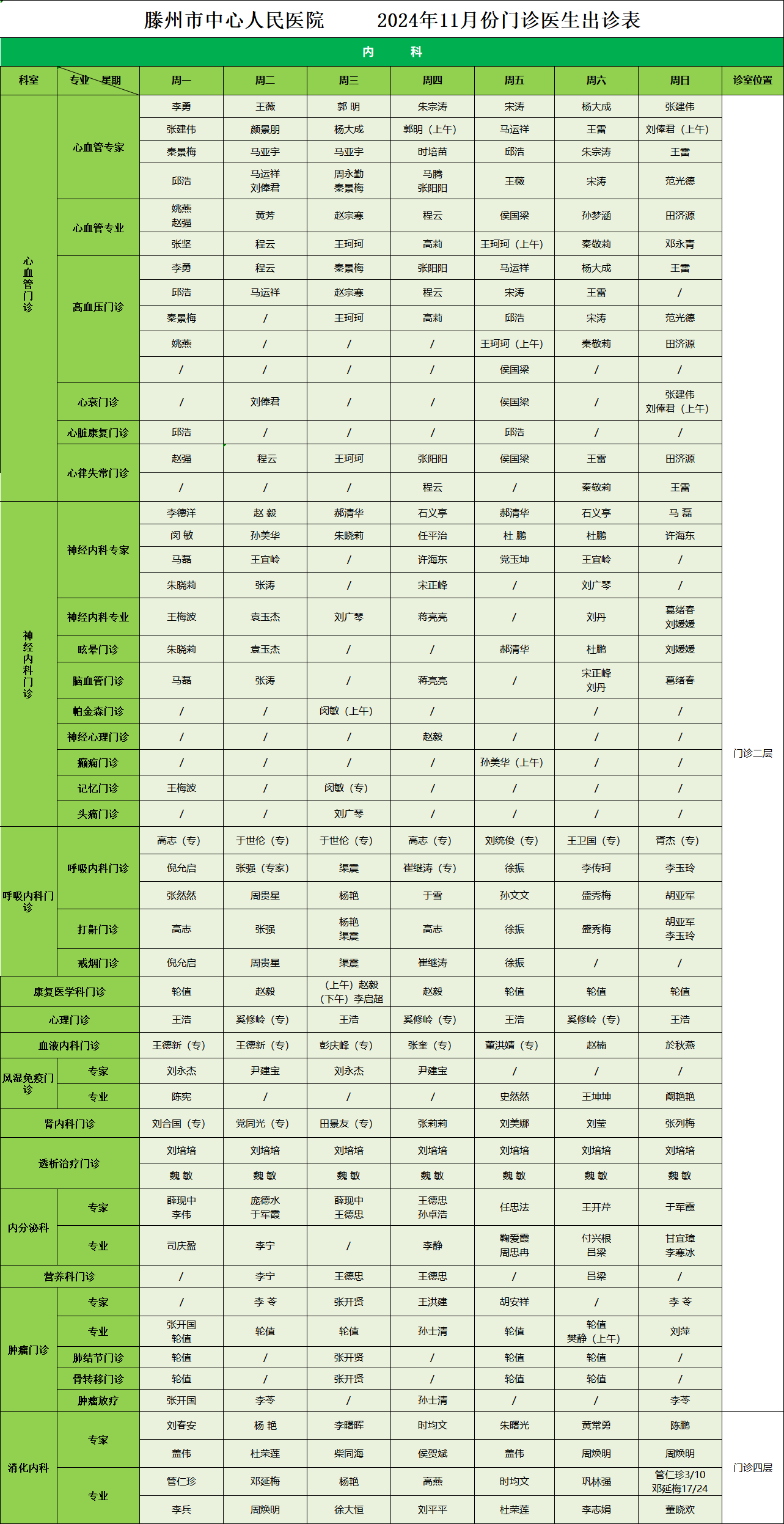 關(guān)注 | 滕州市中心人民醫(yī)院11月份專家、專業(yè)門診排班表