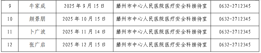 滕州市中心人民醫(yī)院院領(lǐng)導(dǎo)班子接待日一覽表