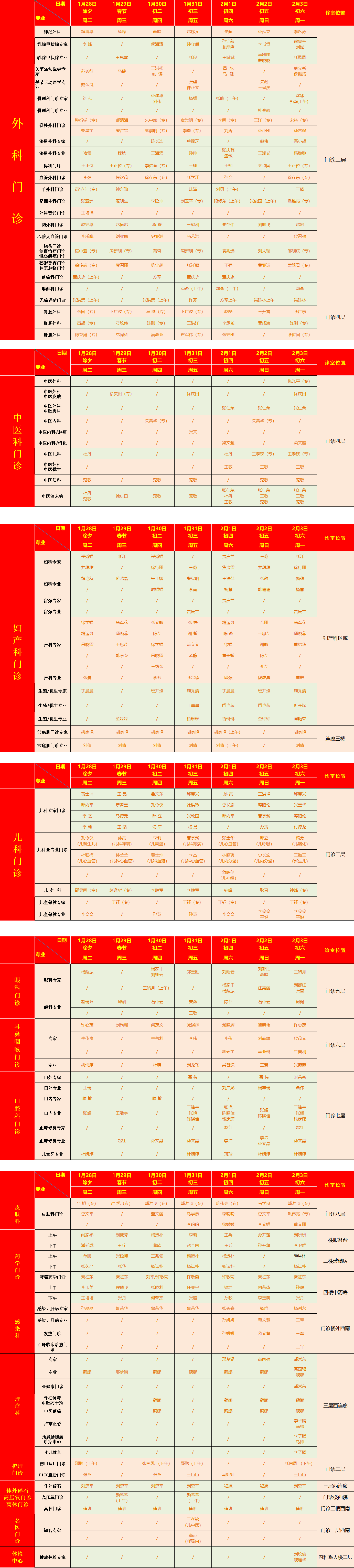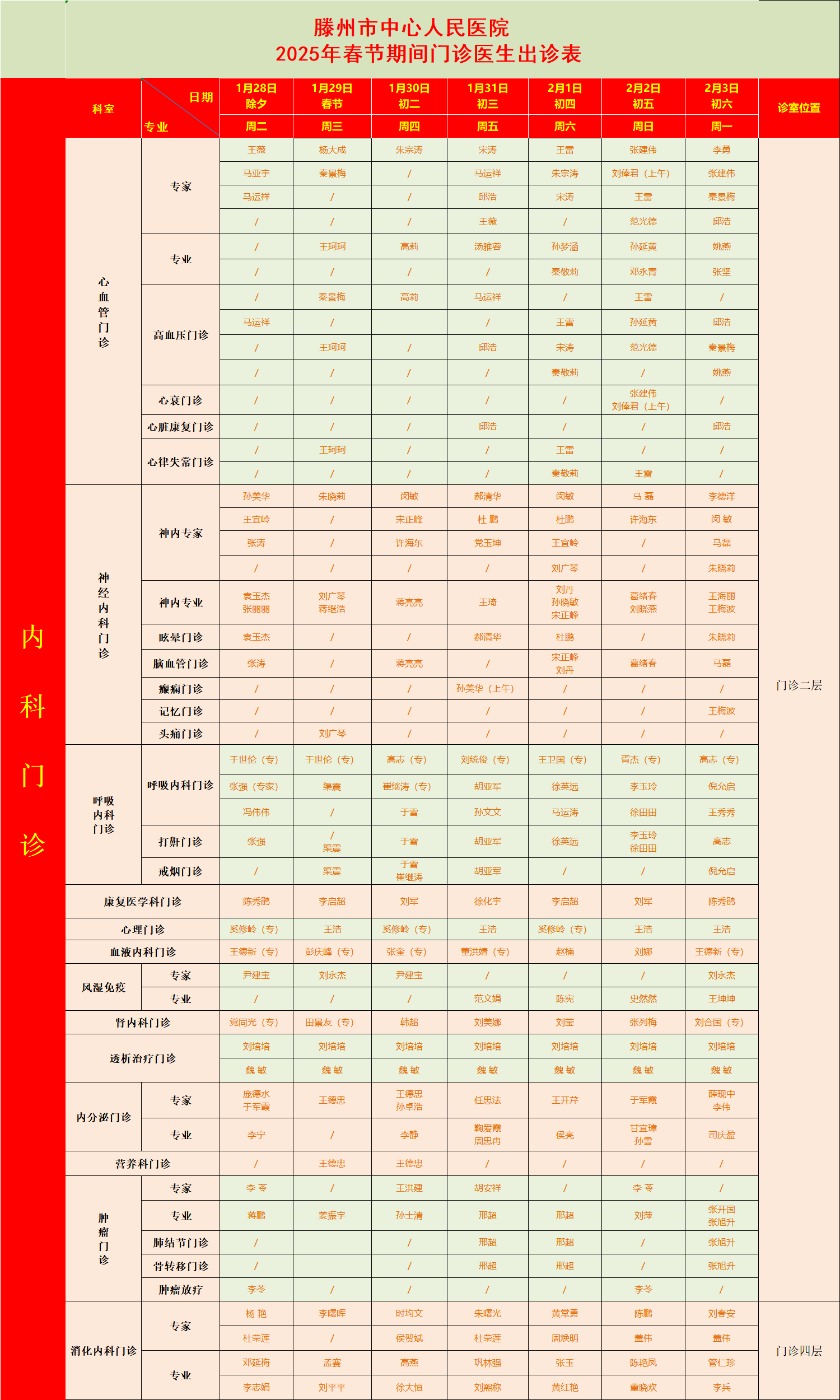 滕州市中心人民醫(yī)院2025年春節(jié)期間門診醫(yī)生出診表
