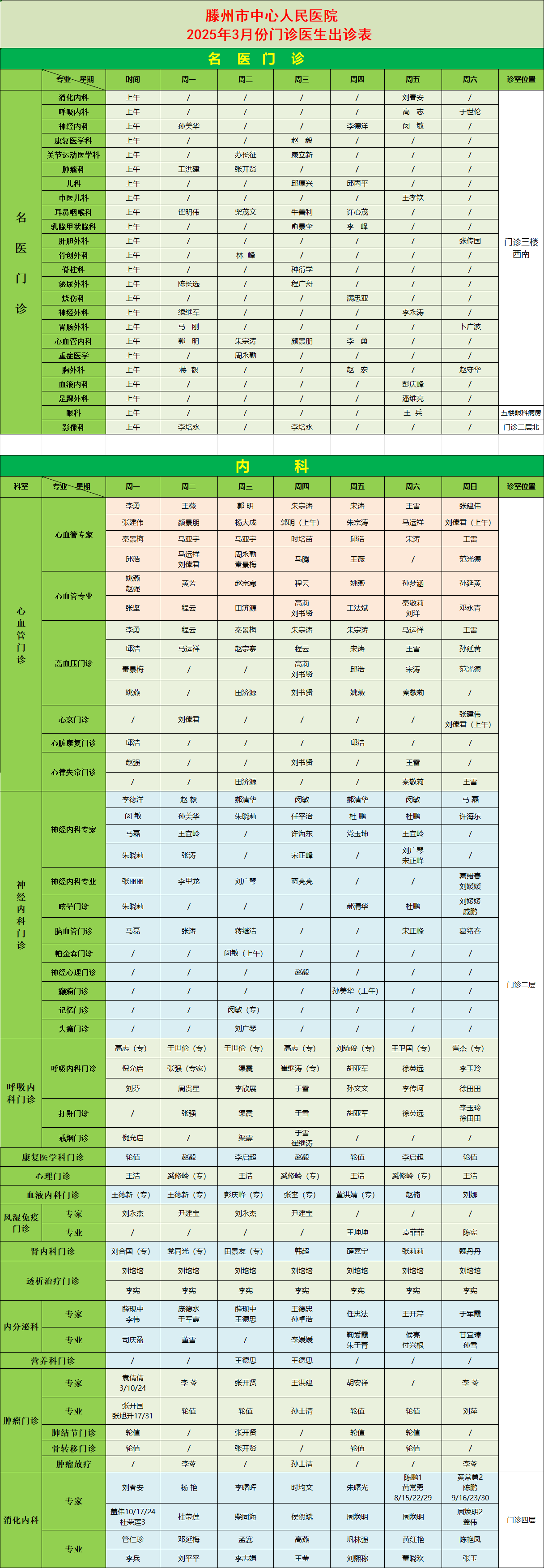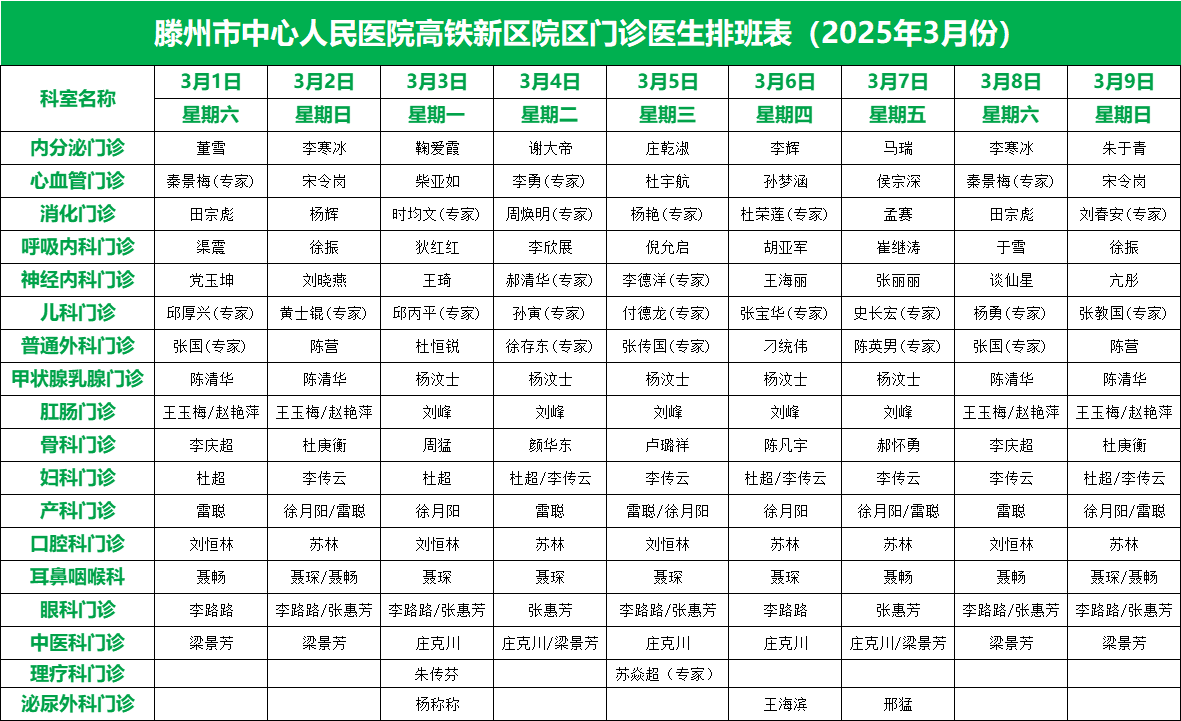 關(guān)注 | 滕州市中心人民醫(yī)院3月份專家、專業(yè)門診排班表