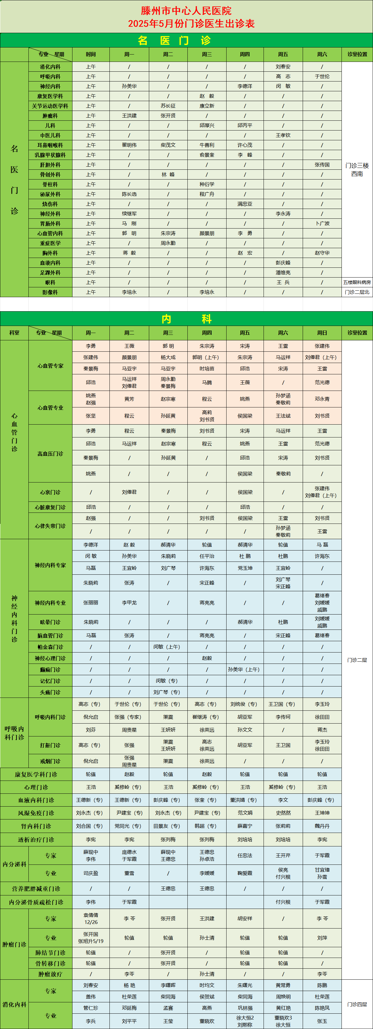 關(guān)注 | 滕州市中心人民醫(yī)院5月份專家、專業(yè)門診排班表