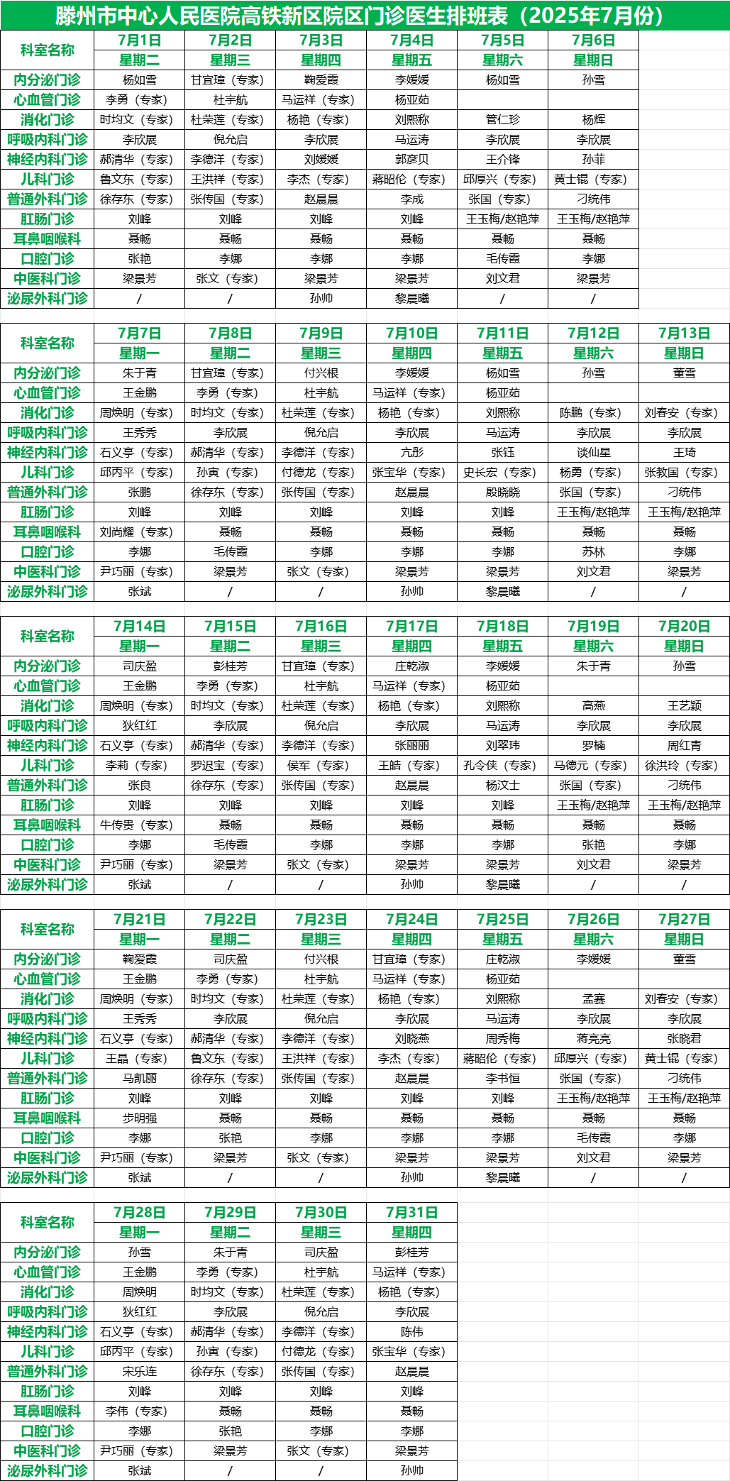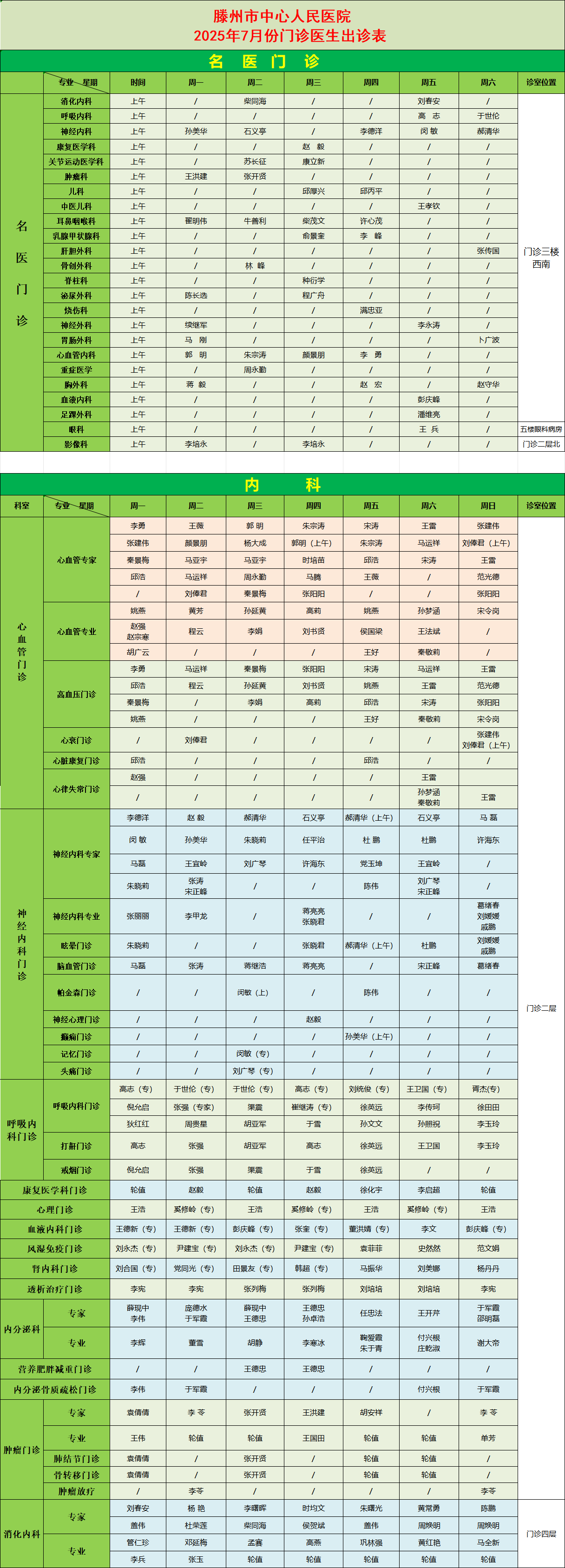 關注 | 滕州市中心人民醫(yī)院7月份專家、專業(yè)門診排班表