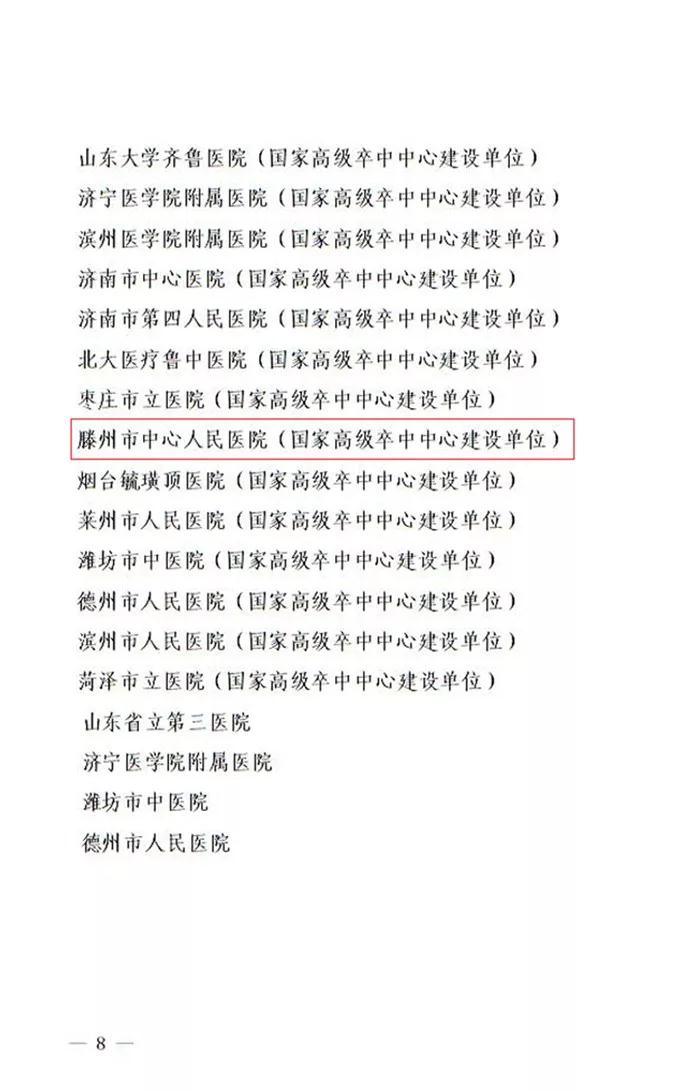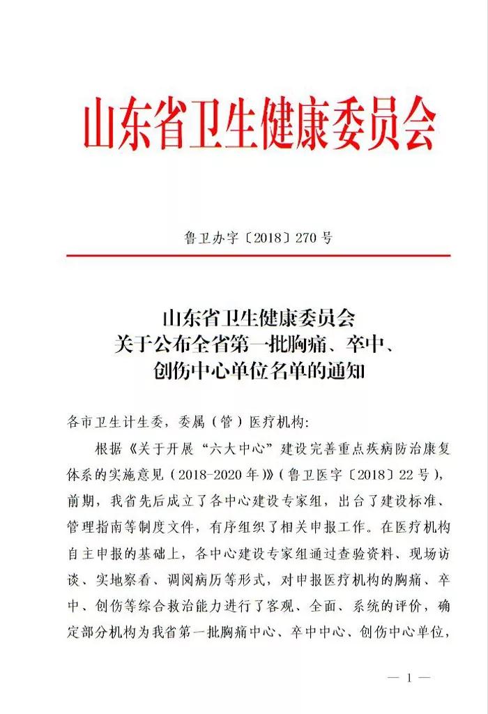 12月25日,山東省衛(wèi)生健康委公布山東省第一批胸痛中心、卒中中心單位名單,滕州市中心人民院申報(bào)的胸痛中心、卒中中心均成功獲批。