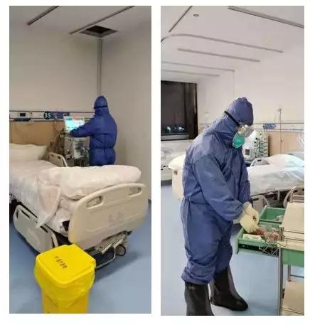 這樣的裝備一點都不透氣!早上的8點進的病房,下午兩點才出來,全身都是汗,一干就是6個小時,全身都濕透了。