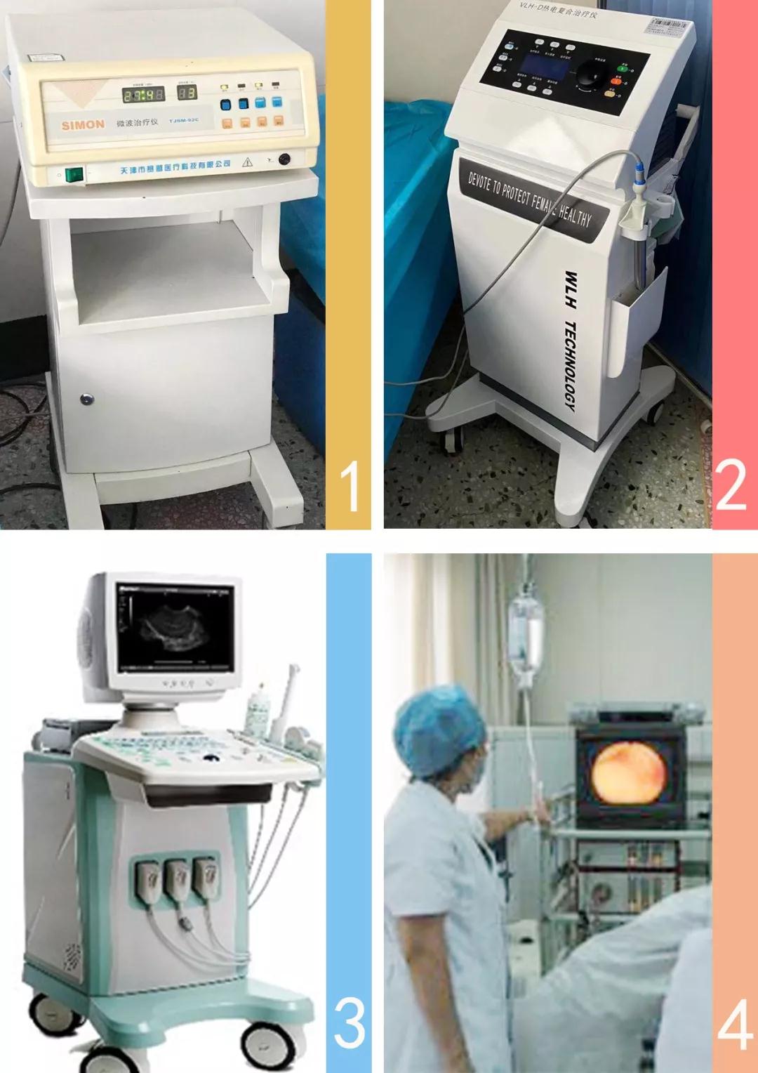1.微波治療儀 2.子宮內膜理療儀 3.陰道彩超儀 4.宮腔鏡