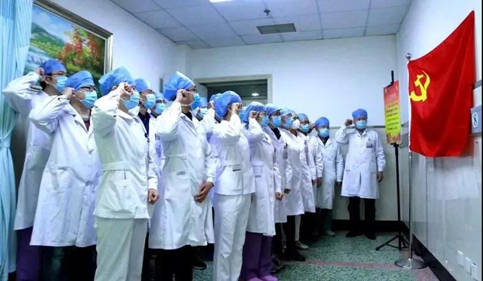 疫情是殘酷的,很多醫(yī)生、護(hù)士一直在感染科病房和發(fā)熱門診兩邊跑,急診、藥房、檢驗(yàn)、影像等科室的工作人員,全力靠上支持工作。大家都沒白沒黑地加班加點(diǎn),甚至顧不上喝一口水,常常一天只能吃上一頓飯,也弄不清是早飯還是晚飯。就是在這樣的緊急關(guān)頭下,全體黨員向黨和人民莊嚴(yán)承諾:崗位就是戰(zhàn)位、使命就是責(zé)任!守護(hù)生命、勇于擔(dān)當(dāng)、恪守盡職、眾志成城,全力打好抗擊疫情保衛(wèi)戰(zhàn)!