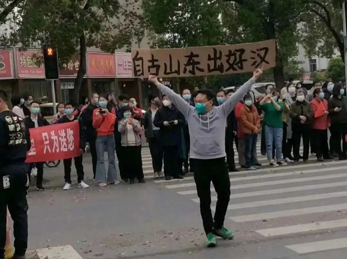 正在離開黃岡的山東醫(yī)療車隊所到之處受到當?shù)匕傩諅兊膴A道歡迎,他們手中揮舞著紅旗對著車內的英雄們喊道“感謝山東醫(yī)療隊!感謝山東人民!謝謝你們!”