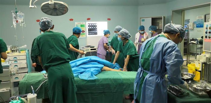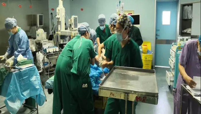 與此同時,神經(jīng)外科、產(chǎn)科、麻醉科、新生兒科、產(chǎn)房、ICU等相關(guān)科室大夫正在手術(shù)室進行緊張有序的術(shù)前準備工作?;颊哌M入手術(shù)室后,搶救工作立即開始。產(chǎn)科呂曉霞副主任醫(yī)師、顏曉華主治醫(yī)師迅速對產(chǎn)婦實行剖宮產(chǎn)手術(shù)。