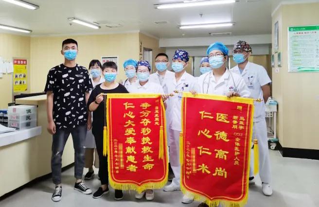 患者的孩子一直在部隊當兵,近期復原回家,得知母親的治療經(jīng)過,非常感動!2020年7月15日,全家人到科室表示感謝,并送上錦旗。
