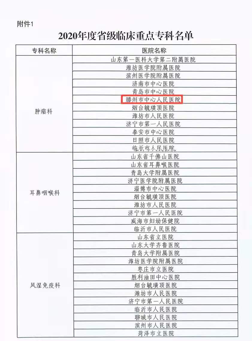12月18日,山東省衛(wèi)生健康委員會下發(fā)了《關于確定2020年度省級臨床重點??频耐ㄖ罚菔兄行娜嗣襻t(yī)院腫瘤科獲評山東省臨床重點???,這是我院腫瘤科繼去年獲得山東省臨床精品特色??浦螅@得的又一項省級重點??品Q號。