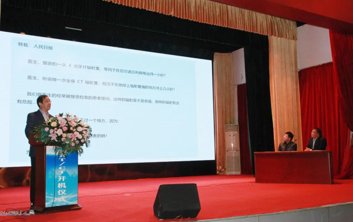 我院院長楊瓊在講話中,回顧了醫(yī)院為解決百姓就醫(yī)難題、服務(wù)區(qū)域醫(yī)學事業(yè)、積極引進PET-CT的歷程,介紹了作為全息數(shù)字化PET-CT系統(tǒng)相對于傳統(tǒng)機型的優(yōu)勢,并展望了PET-CT啟用后為廣大百姓帶來的便利。表示, PET-CT的開機意義重大,標志著我院的設(shè)備配置及醫(yī)學影像診斷水平處于本地區(qū)的領(lǐng)先地位,并將對以腫瘤治療為代表的多學科診治水平的提升起到重要推動作用,同時為滕州及周邊地區(qū)患者帶來了健康的福音。