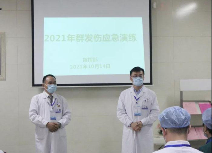此次演練由院黨委委員、副院長(zhǎng)、急救中心主任周永勤擔(dān)任總指揮,宋華主任、王霞護(hù)士長(zhǎng)、張厚海副主任、王家利副主任、韓梅護(hù)士長(zhǎng)、秦莉護(hù)士長(zhǎng)、張磊護(hù)士長(zhǎng)等科室領(lǐng)導(dǎo)積極組織籌辦。醫(yī)務(wù)部、護(hù)理部、公共衛(wèi)生科、院辦公室、宣傳科、保衛(wèi)科、手術(shù)室、ICU、神經(jīng)外科、胸外科、脊柱外科、肝膽外科等多部門協(xié)助配合此次演練。