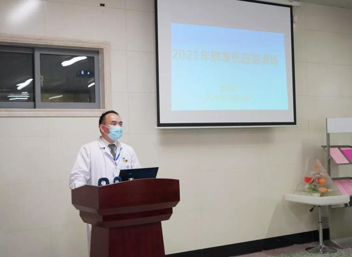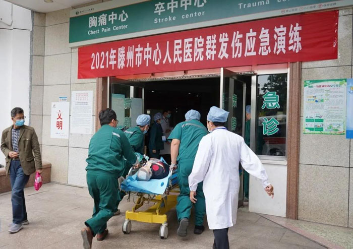 演練啟動(dòng)儀式上,周永勤副院長(zhǎng)發(fā)表重要講話,目前我院創(chuàng)傷中心建設(shè)已經(jīng)步入關(guān)鍵時(shí)期,而群發(fā)傷演練是對(duì)我們的制度、流程和診療水平是最好的檢驗(yàn)。借鑒以往的經(jīng)驗(yàn)教訓(xùn),如何在現(xiàn)有的條件下,提高群體傷、多發(fā)傷的救治成功率是我們需要馬上去做的工作,本次演練是一次練習(xí),同樣是對(duì)我們之前工作的一個(gè)檢驗(yàn),要求參演人員認(rèn)真對(duì)待,動(dòng)作到位,嚴(yán)格按照標(biāo)準(zhǔn)流程進(jìn)行操作,以達(dá)到實(shí)戰(zhàn)的目的。隨后,周永勤副院長(zhǎng)現(xiàn)場(chǎng)宣布,2021年滕州市中心人民醫(yī)院群發(fā)傷演練正式啟動(dòng)。