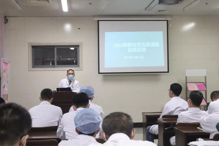 演練后,全體參演人員進(jìn)行總結(jié)反饋,各救治小組對(duì)各自救治的患者進(jìn)行總結(jié)匯報(bào),提出演練中的亮點(diǎn)和不足之處。輸血科主任張厚毅指出,目前我院已經(jīng)修訂了急診用血流程,最快5分鐘出具O型紅細(xì)胞,保證多發(fā)傷患者救治;急診科護(hù)士長(zhǎng)王霞對(duì)演練過(guò)程中的存在的問(wèn)題進(jìn)行反饋;急診科主任宋華對(duì)相關(guān)問(wèn)題進(jìn)行分析,并指出下一步需要關(guān)注防疫、院感等工作。最后,周永勤副院長(zhǎng)進(jìn)行總結(jié),就本次演練的不足之處提出整改意見和措施,要求針對(duì)本次演練反應(yīng)出的問(wèn)題,積極整改,不斷提升急診科整體救治水平。