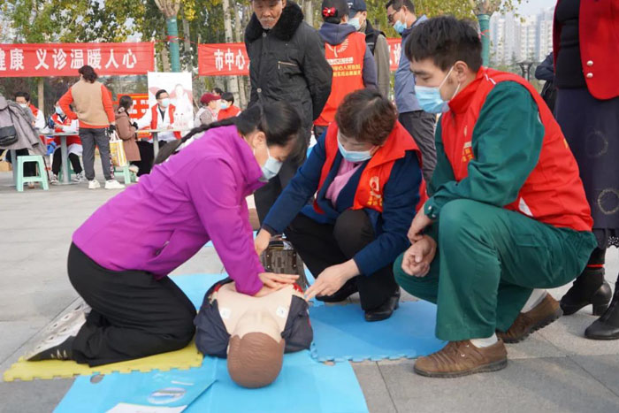 現(xiàn)場群眾在工作人員的引導下,整個義診現(xiàn)場火熱而有秩序開展。志愿者發(fā)放健康科普宣傳資料,普及醫(yī)學知識和保健常識;護士們熱情地為群眾提供測量血壓、血糖等服務;臨床專家通過問診、查體、把脈認真細致地為每一位群眾分析病情,及時反饋檢查中發(fā)現(xiàn)的健康問題,對部分高血壓、糖尿病、高血脂患者進行生活方式指導,并結合病情為其制定合理的健康指導方案,鼓勵其養(yǎng)成健康的生活方式;同時,急救中心人員現(xiàn)場進行急救技能演練培訓,增加群眾的急救知識,提高其急救技能和應急能力;公衛(wèi)人員為群眾耐心講解“戴口罩、勤洗手、少外出、常通風、不聚集”等新冠疫情防控知識。