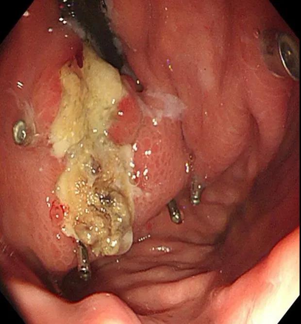 靜脈麻醉下,蓋偉主任按照手術(shù)預(yù)案自靜脈團(tuán)出入口分若干點(diǎn)使用鈦夾夾閉血管,將血管分隔為多個(gè)血管腔,阻斷或減緩血流,分割點(diǎn)多處采用硬化劑+組織膠+硬化劑“三明治”方法注射,曲張血管均硬化后,手術(shù)結(jié)束,患者安返病房。術(shù)后給予禁食、抑酸、補(bǔ)液處理。一周后,患者順利出院。