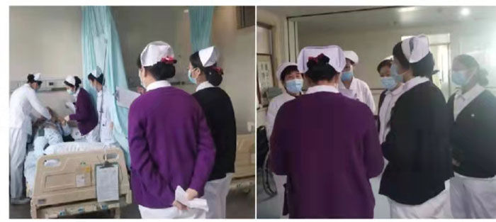 床旁交接班完畢,督導(dǎo)組又查閱了交班記錄本、夜間護(hù)理記錄和其他相關(guān)護(hù)理文書,強調(diào)規(guī)范、及時記錄文書的重要性。同時,對科室護(hù)理管理者提出要求,要求科室護(hù)士長對科內(nèi)床旁交班質(zhì)量予以把控,交接班內(nèi)容要突出重點,強化科室人文關(guān)懷和健康教育。