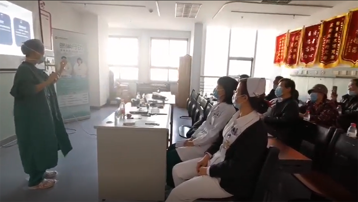 首先,崔秀娟主任以《卵巢癌治療方案》為主題,向大家介紹了卵巢癌的全程管理,從卵巢癌的發(fā)病率、手術(shù)、化療以及靶向治療等方面詳細(xì)生動地向大家講解了卵巢癌的有關(guān)知識;對患者關(guān)心的幾個(gè)方面的問題,比如化療副作用、化療后隨訪等內(nèi)容,做了詳細(xì)的解釋和說明,使現(xiàn)場患者都能清晰地了解到相關(guān)知識,給予患者及家屬極大的鼓舞,讓卵巢癌患者不再恐懼,直面疾病,充滿了戰(zhàn)勝疾病的信心和勇氣。