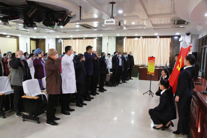 宣誓儀式結(jié)束,與會人員共同觀看了火箭軍新兵授銜儀式干部講話及上海交大西遷精神視頻。隨后,紀(jì)委書記趙逢平宣讀了《關(guān)于醫(yī)共體模式內(nèi)醫(yī)護(hù)人員參與雙向坐診轉(zhuǎn)診學(xué)科融合等有關(guān)事項的規(guī)定(修訂)》。