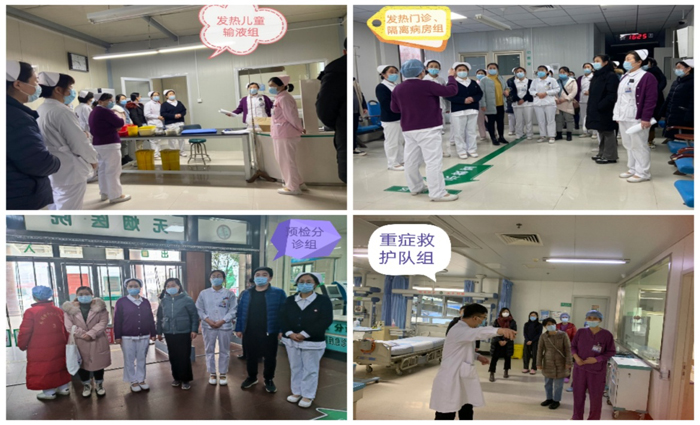 十分鐘后,后備人員陸續(xù)到位。張梅按照各區(qū)域需求,對(duì)到位人員進(jìn)行分組(發(fā)熱門診、隔離病房組、發(fā)熱兒童輸液組、門急診預(yù)檢分診組、重癥救護(hù)隊(duì)組)。各組后備人員在各區(qū)域護(hù)士長(zhǎng)帶領(lǐng)下進(jìn)入工作區(qū),并現(xiàn)場(chǎng)熟悉區(qū)域的環(huán)境及布局流程,了解工作職責(zé)及防護(hù)注意事項(xiàng)。