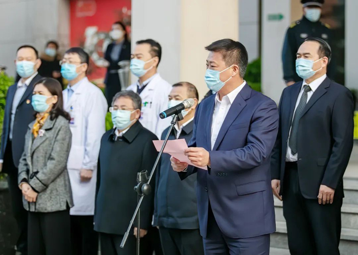我院黨委書記邢佑文在講話中指出,抗疫先鋒志愿服務(wù)隊(duì)授旗儀式彰顯了白衣天使的情懷和擔(dān)當(dāng),在這場(chǎng)沒有硝煙的戰(zhàn)場(chǎng)上,你們是逆行者,更是勝利者!抗疫責(zé)任重大、使命光榮。身為醫(yī)務(wù)工作者要在疫情防控斗爭(zhēng)中挺身而出、英勇奮斗、扎實(shí)工作,以實(shí)際行動(dòng)為疫情防控工作做出自己的貢獻(xiàn)!