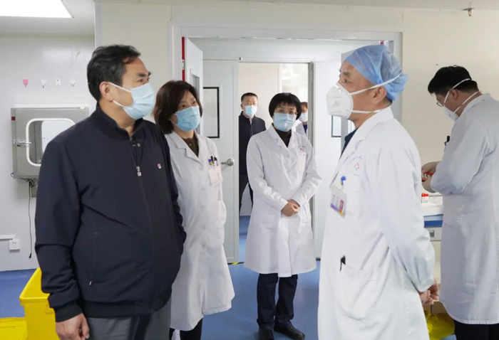 朱紹猛首先察看了實(shí)驗(yàn)室的整體布局、現(xiàn)場(chǎng)秩序。檢驗(yàn)科主任滿思金就我院負(fù)責(zé)的核酸檢測(cè)工作進(jìn)度、實(shí)驗(yàn)室安全防護(hù)物品的儲(chǔ)備情況向院領(lǐng)導(dǎo)作了匯報(bào)。