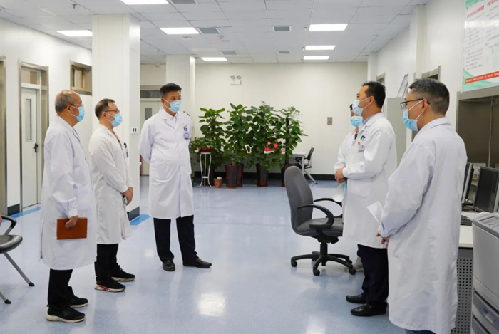院領導一行實地走訪了門診CT-MR、門診超聲、PET/CT中心、內(nèi)系樓CT-MR等功能區(qū),對影像中心在疫情期間疫情防控和醫(yī)療工作兩手抓表示充分肯定。各位領導仔細詢問了工作人員的休息情況,向堅守在各部門工作崗位,參與防疫閉環(huán)管理的同志進行慰問,表達了醫(yī)院黨委的關心與鼓勵。
