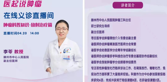李苓主任開展線上講座——腫瘤放射治療篇,向廣大在線病友傳播防癌抗癌健康知識(shí),為在線提問(wèn)的百姓耐心解答困惑,傳播科學(xué)防癌理念,贏得了在線病友的一致稱贊。