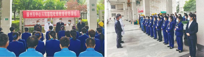 為保障電梯乘客在乘梯出現(xiàn)緊急情況時得到及時解救,避免因恐慌和非理性操作而導(dǎo)致傷亡事故,最大限度保障乘客的人身安全以及設(shè)備安全,5月13日,設(shè)備科聯(lián)合三菱電梯滕醫(yī)維保站開展“電梯困人”應(yīng)急救援演練。后勤部、安監(jiān)辦、物業(yè)等相關(guān)人員共61人參加本次演練。