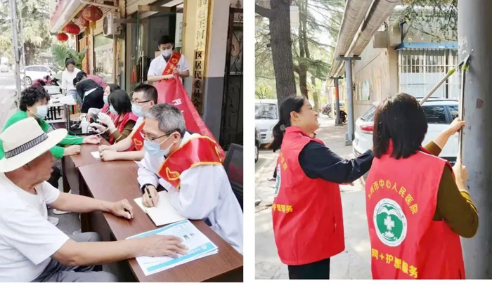 活動現(xiàn)場,泌尿外一科青年專家向群眾科普常見病的防治知識,并免費為群眾測量血壓;文壇社區(qū)警務(wù)室民警同志向現(xiàn)場群眾發(fā)放“防詐騙”宣傳材料;我院青年志愿者主動到社區(qū)清洗部分“小廣告”,為滕州市文明城市建設(shè)貢獻(xiàn)自己的力量。