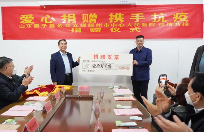 捐贈(zèng)儀式上,山東墨子基金會(huì)理事長楊位明同志表示,滕州自疫情發(fā)生以來,以滕州市中心人民醫(yī)院為代表的所有醫(yī)務(wù)人員,奮戰(zhàn)在抗疫一線,舍小家,顧大家,用自己的熱血和擔(dān)當(dāng),為滕州的疫情防控工作做出突出貢獻(xiàn)。今天,墨子基金會(huì)在有限的資金里,拿出部分捐款進(jìn)行捐贈(zèng),希望可以用愛傳遞愛,用行動(dòng)傳遞行動(dòng),帶動(dòng)更多的愛心企業(yè)家和愛心人士參與到疫情防控捐贈(zèng)活動(dòng)中來,為全市的疫情防控做出應(yīng)有的貢獻(xiàn)。