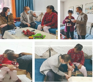 近期,因疫情原因,腹透患者來院就診的機會減少。5月13日下午,腎內(nèi)科腹透團隊在黨同光副主任、王翠護士長的帶領(lǐng)下對腹透患者進行家訪。本次主要對有問題的兩名腹透患者進行家訪。一名患者是尿毒癥腹膜透析皮膚反復(fù)感染的中年患者,多次住院,使她產(chǎn)生了要放棄的念頭;另一名是尿毒癥腹膜透析合并冠心病、陳舊性腦梗死的老年