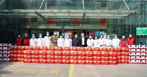 4月8日零時開始,全市人民實行全域靜態(tài)管理,為避免因封控管控區(qū)域造成醫(yī)務(wù)人員的“非戰(zhàn)斗減員”,我院第一時間啟動閉環(huán)式管理,全院上下連續(xù)奮戰(zhàn)歷時十余天,舍小家,為大家,以真情對戰(zhàn)疫情,以力度疊加速度。正是這種堅守,感動著社會上的愛心人士。4月20日上午,滕州福達商貿(mào)有限公司攜手國窖1573團隊向我院手術(shù)室捐贈價