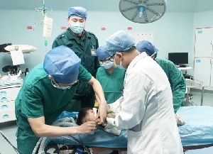 2月18日下午18:25分,耳鼻咽喉科劉尚耀主治醫(yī)師接到急診科電話,稱有一名兩歲患兒懷疑氣管異物,須急會(huì)診。時(shí)間就是生命,搶救患兒分秒必爭!劉尚耀醫(yī)師立即聯(lián)系手術(shù)室,啟動(dòng)急診綠色通道,給予患兒球囊輔助呼吸,和急診科護(hù)師葛瑤、張后維一路飛奔,將患兒護(hù)送至手術(shù)室內(nèi)。春節(jié)過后,大量慢性手術(shù)積壓,手術(shù)量劇增,耳鼻咽