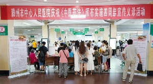 為慶?!吨腥A人民共和國(guó)中醫(yī)藥法》頒布實(shí)施四周年,7月13日上午,我院中醫(yī)科聯(lián)合中草藥房、理療科共同在門診一樓大廳舉行義診活動(dòng)。中醫(yī)科徐慶田主任,張文、尹巧麗主治醫(yī)師,中草藥房孫毅主任,理療科齊國(guó)賓主治醫(yī)師及部分實(shí)習(xí)醫(yī)生參加義診活動(dòng)。外面熱浪滾滾,擋不住前來咨詢的群眾?!靶熘魅?,我女兒頭上長(zhǎng)個(gè)疙瘩怎么回事