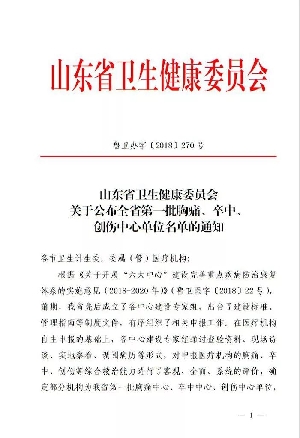 12月25日,山東省衛(wèi)生健康委公布山東省第一批胸痛中心、卒中中心單位名單,滕州市中心人民院申報(bào)的胸痛中心、卒中中心均成功獲批?! ≡u審期間,山東省胸痛中心、卒中