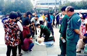 10月8號(hào)上午,第八屆“急救白金十分鐘全國自救互救活動(dòng)日”滕州站大型公共普及宣傳活動(dòng)在市龍泉廣場(chǎng)舉行。我院黨委委員、醫(yī)務(wù)部主任、急救中心主任周永勤帶領(lǐng)20余名醫(yī)務(wù)人員參加本次活動(dòng)。 活動(dòng)現(xiàn)場(chǎng),我院醫(yī)務(wù)人員向