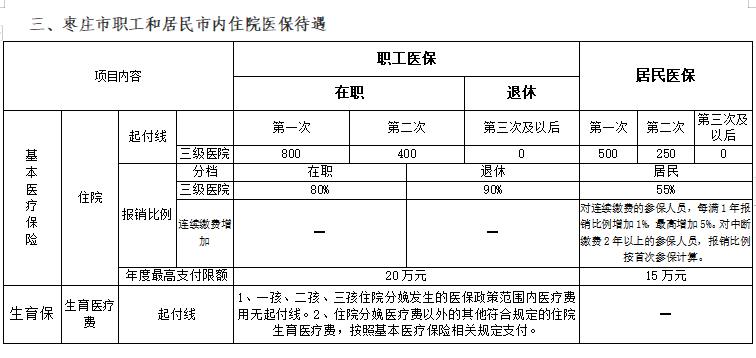 三、棗莊市職工和居民市內住院醫(yī)保待遇