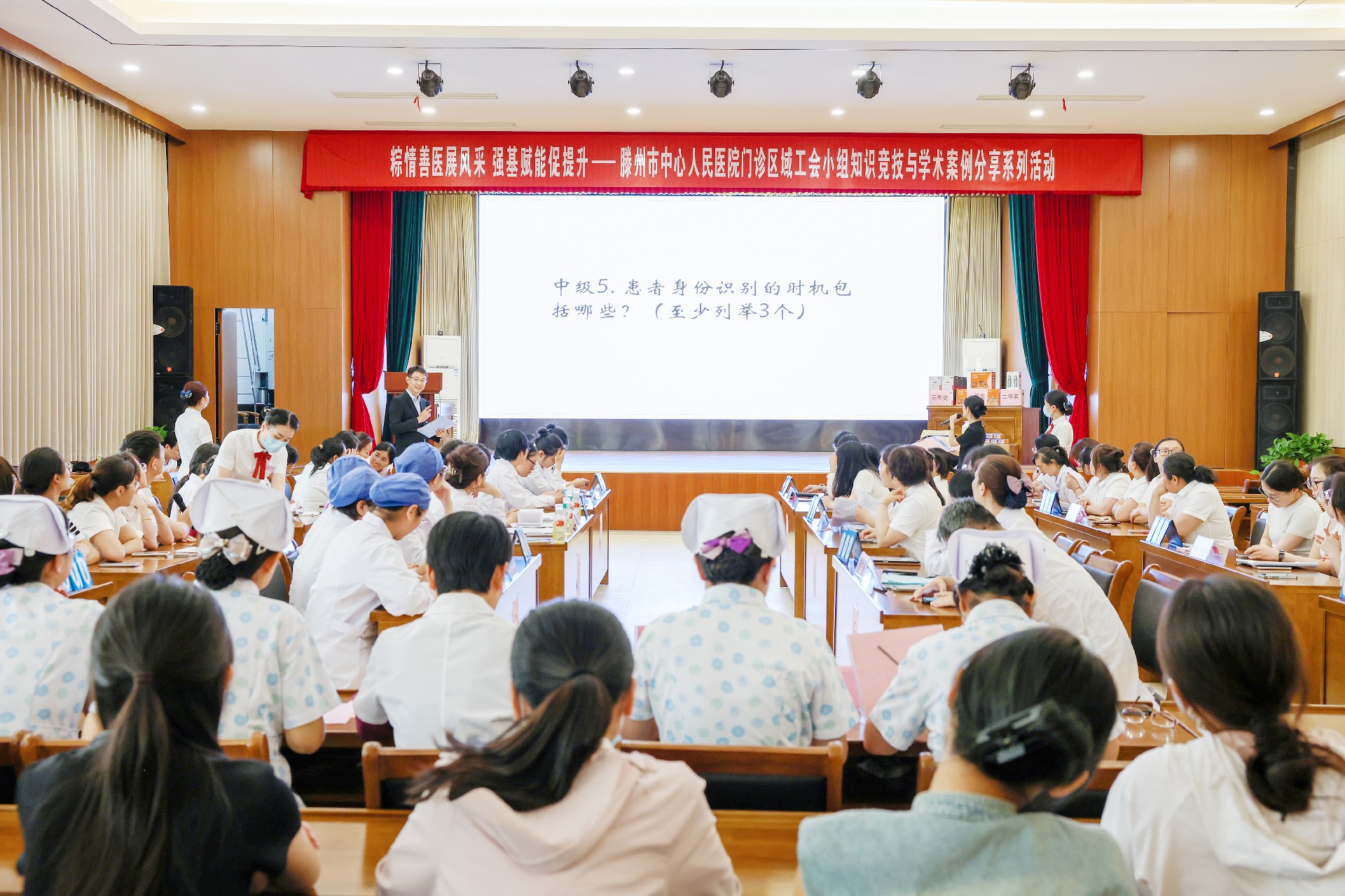為深入貫徹落實(shí)三級醫(yī)院復(fù)審工作要求,全面提升醫(yī)療質(zhì)量安全管理水平,5月29日,我院工會、門診區(qū)域工會小組聯(lián)合舉辦 “智匯三甲 創(chuàng)優(yōu)爭先”應(yīng)知應(yīng)會知識挑戰(zhàn)賽。院黨委副書記朱紹猛,黨委委員、黨群工作部主任王維,以及工會、團(tuán)委、門診各區(qū)域科室負(fù)責(zé)人參加活動。