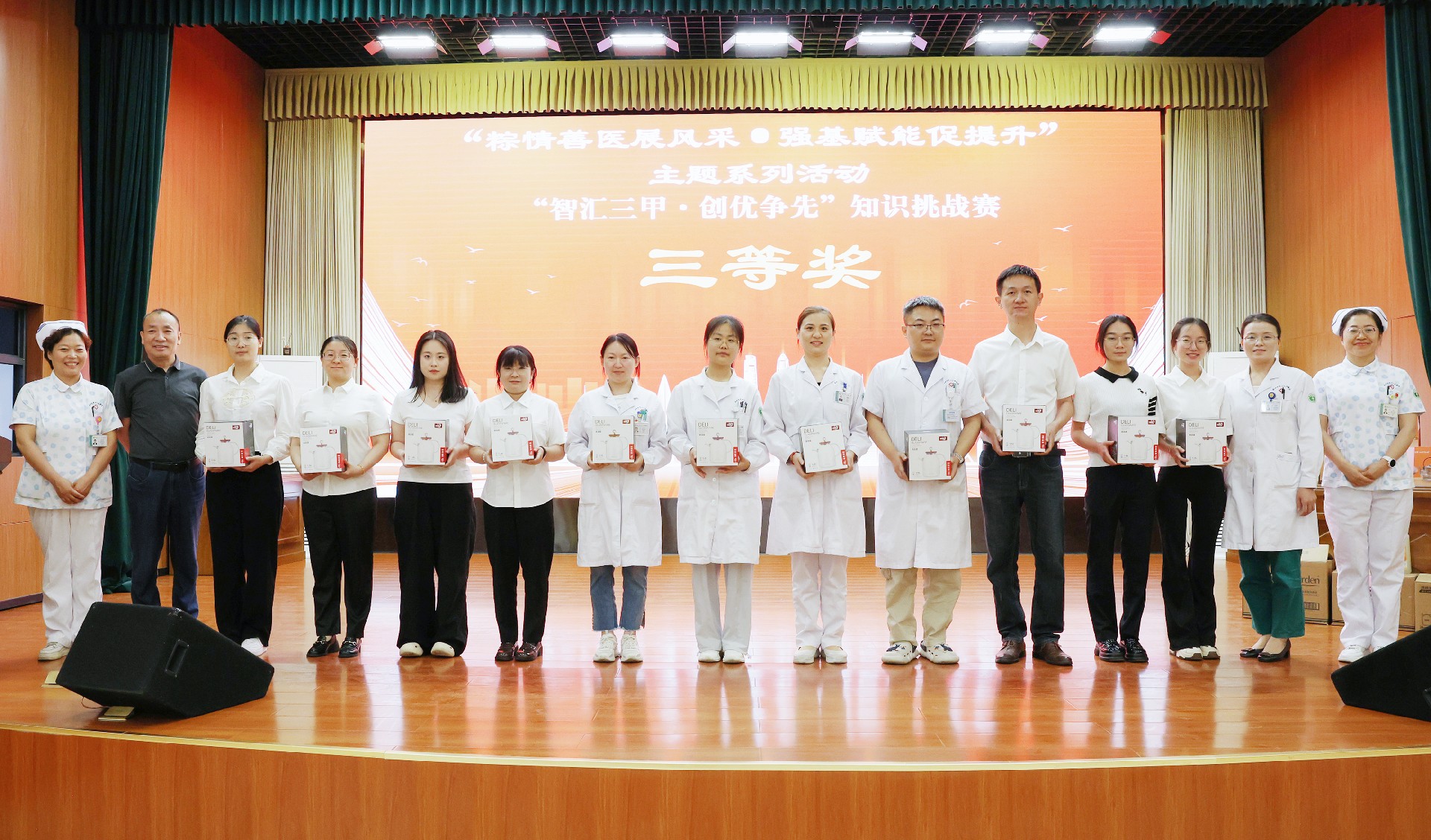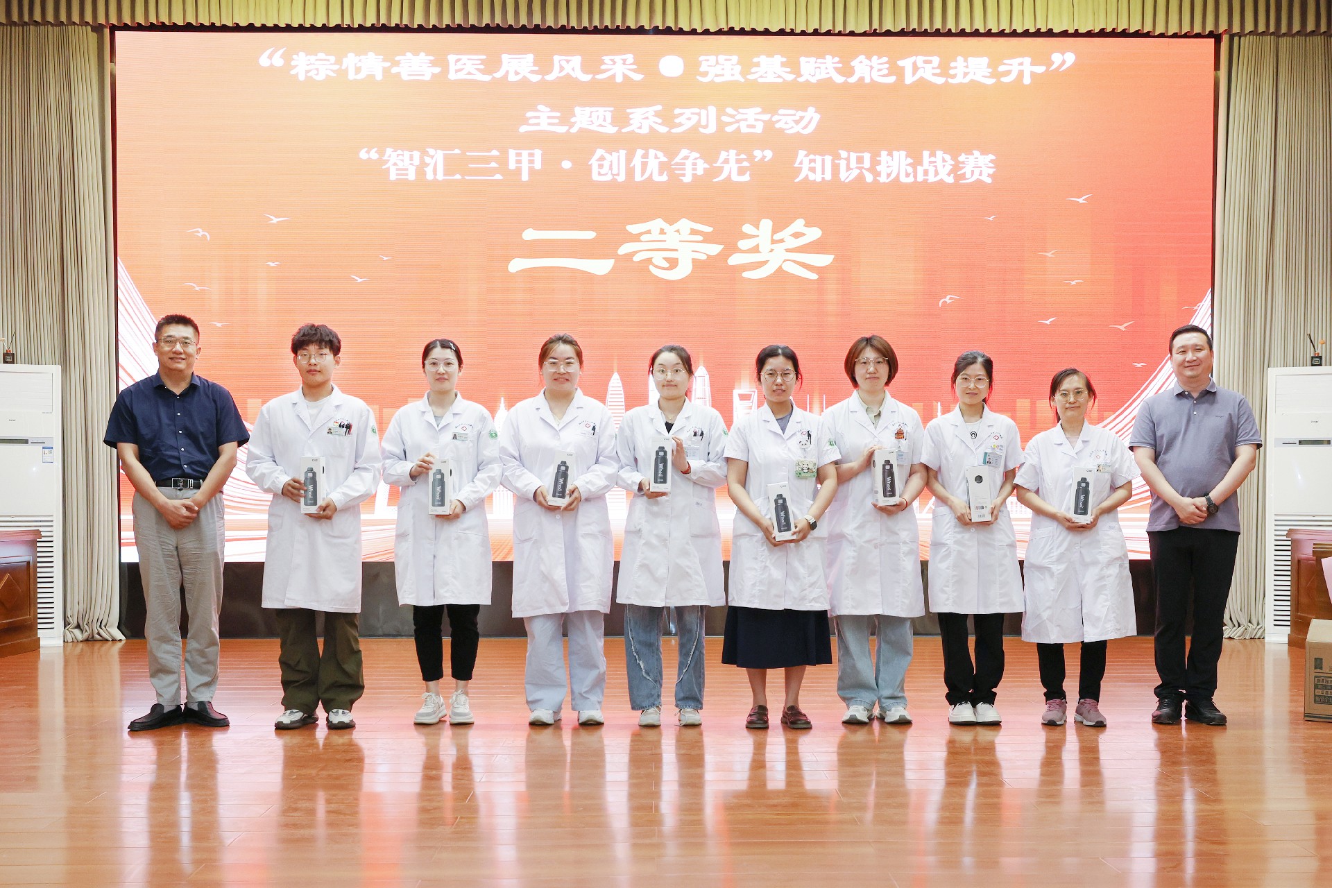 經(jīng)過緊張激烈的比拼,婦產(chǎn)科門診“沖鋒小隊”獲得一等獎;檢驗(yàn)科“檢驗(yàn)科對對隊”、超聲科“超能陸戰(zhàn)隊”榮獲二等獎;口腔科門診“牙牙樂隊”、眼科和中醫(yī)科聯(lián)合的“睛彩杏林隊”、皮膚科“精業(yè)護(hù)膚隊”榮獲三等獎。