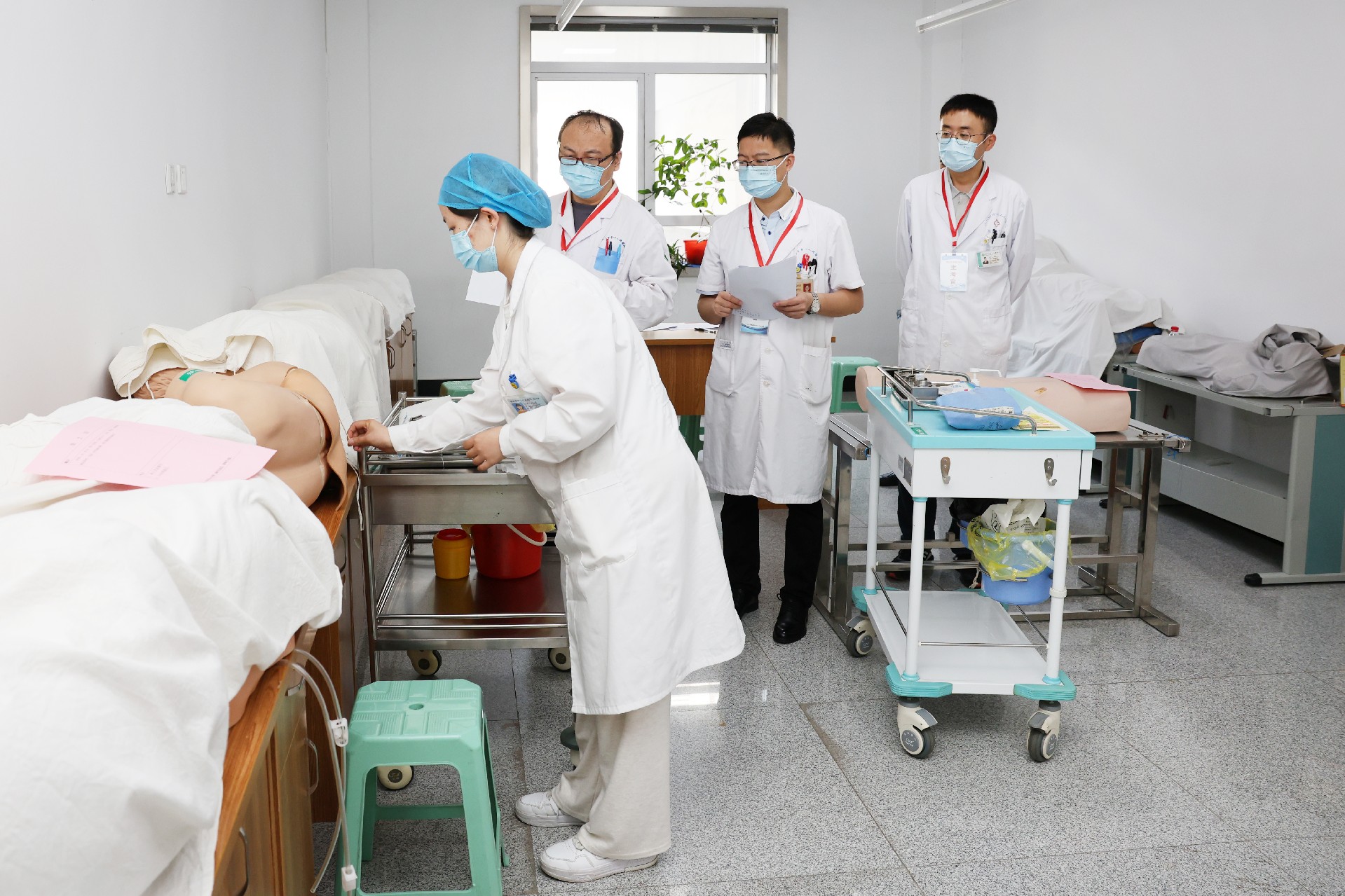為確保此次考核圓滿完成,醫(yī)院和學(xué)校給予高度重視。5月29日上午,我院黨委副書記、院長(zhǎng)武宗義親臨現(xiàn)場(chǎng)巡考。下午,濟(jì)寧醫(yī)學(xué)院青年專家韓鳳霖、朱啟武到考試現(xiàn)場(chǎng)督導(dǎo)巡視,認(rèn)為我院此次考試組織嚴(yán)密有序,執(zhí)考嚴(yán)謹(jǐn)規(guī)范。同時(shí),兩位專家結(jié)合參加國(guó)賽、省賽獲獎(jiǎng)經(jīng)驗(yàn),就臨床技能帶教工作進(jìn)行了交流與指導(dǎo)。
