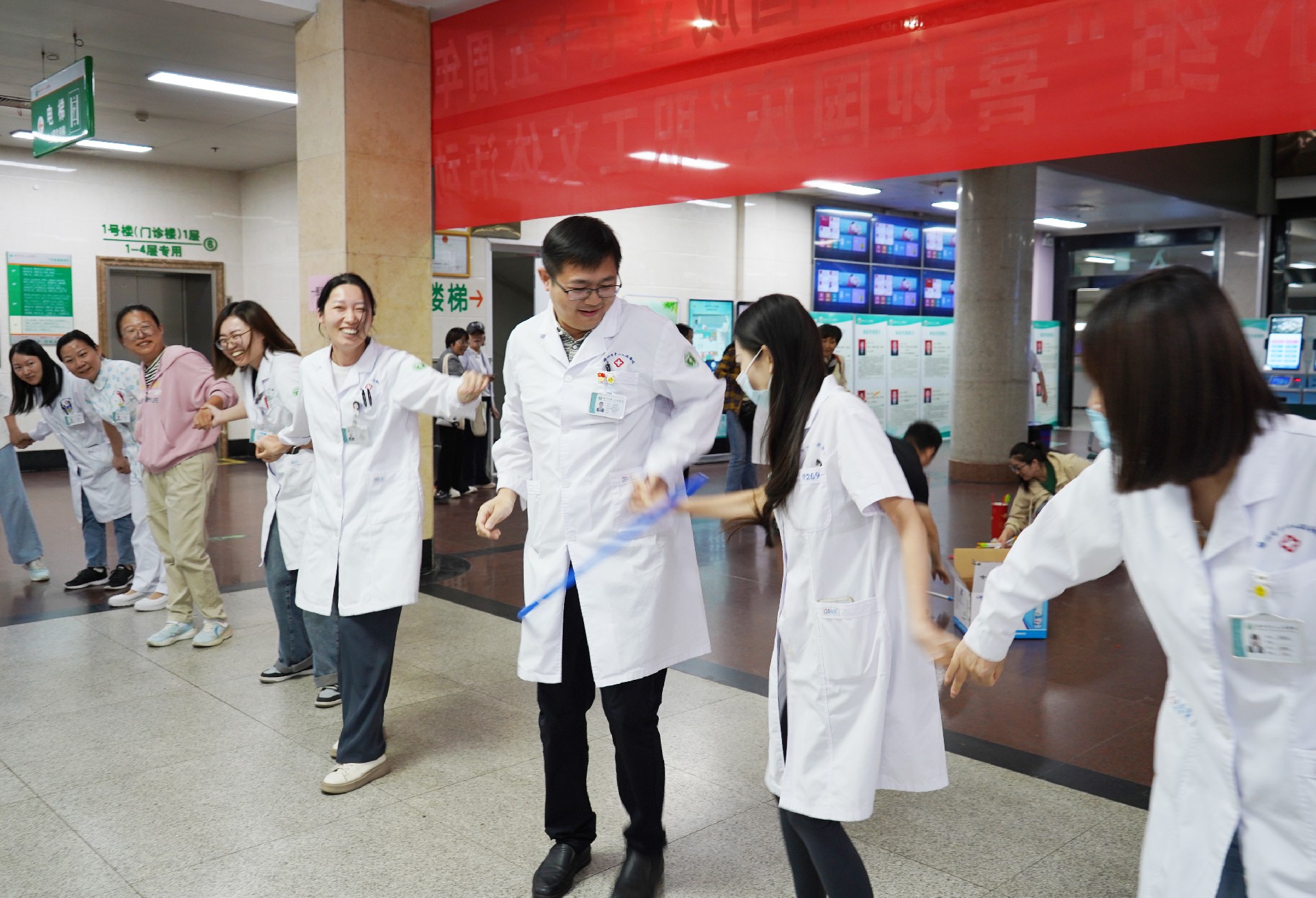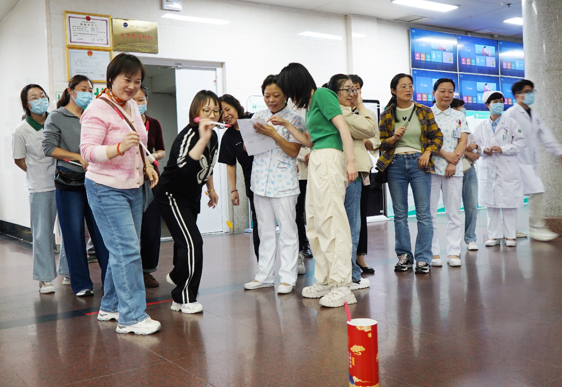 為慶祝新中國75周年華誕,豐富職工業(yè)余文體生活,展現(xiàn)職工積極向上的精神風(fēng)貌,9月24日下午,我院門診區(qū)域工會(huì)小組在門診樓一樓舉辦“禮贊新中國 建功新時(shí)代”“喜迎國慶”職工文體活動(dòng)。院黨委委員、黨群工作部主任王維出席活動(dòng)并講話。黨群部、工會(huì)、門診區(qū)域各科室負(fù)責(zé)人及門診區(qū)域醫(yī)務(wù)人員參加活動(dòng)。