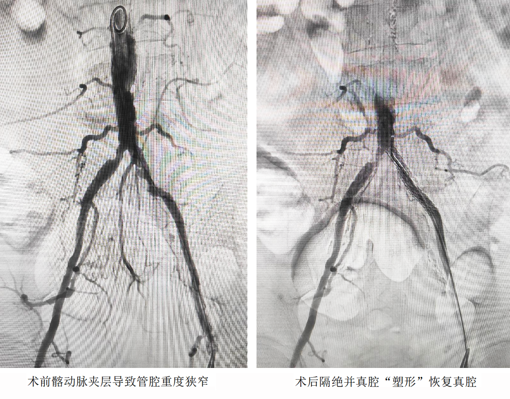 患者,男,66歲,因“左下肢重度間跛、皮膚蒼白、足背動脈搏動消失并夜間靜息痛”收入院。影像檢查顯示:左髂動脈夾層形成真腔狹窄,血流“斷崖式”下降;股總動脈被鈣化斑塊完全“封堵”;股淺動脈長段閉塞,閉塞長度>15cm。三處病變形成“連環(huán)鎖”,若不及時(shí)干預(yù),患者面臨截肢甚至生命危險(xiǎn)。