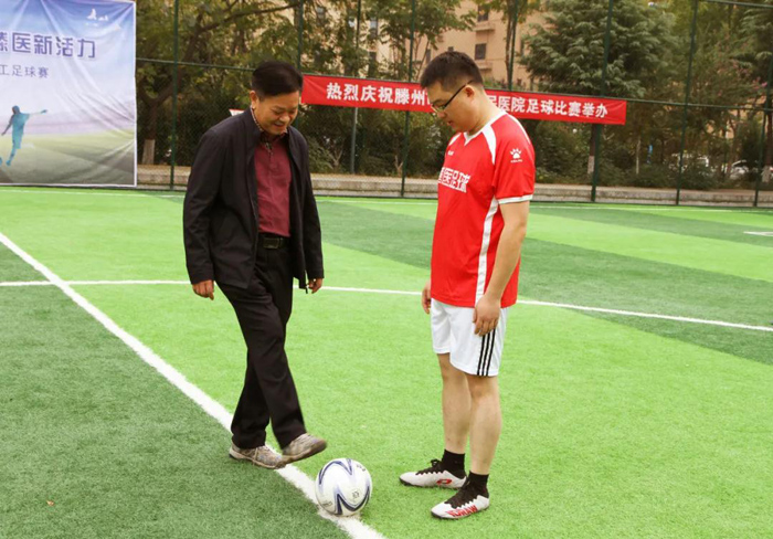 為慶祝建院70周年,提升職工健康水平,豐富職工的業(yè)余文化生活,增強職工的凝聚力,營造和諧向上的醫(yī)院文化氛圍,10月11日上午,我院第六屆職工足球比賽在市奧體中心足球場隆重開幕。滕州市人大副主任李廣憲;滕州市教育和體育局黨組成員、市體育發(fā)展服務中心黨組書記主任王介貞;滕州市融媒體中心總主編李衛(wèi)東;滕州市衛(wèi)健局黨組成員、機關黨委書記顏紅菊;滕州市財稅管理服務中心主任高鵬;我院院長楊瓊、黨委書記朱恒科等領導及辦公室、工會、共青團等科室負責人、參賽運動員代表出席開幕式。開幕式由黨委書記朱恒科主持。