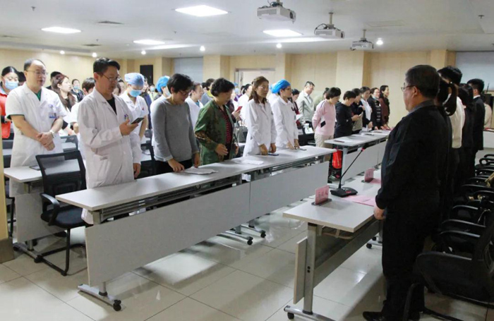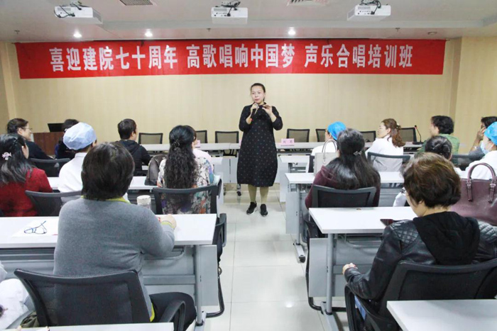 會(huì)上,院團(tuán)委書記崔艷宣讀活動(dòng)方案。院黨委副書記馬瑞武宣布培訓(xùn)班正式開始并提出要求,他希望大家要以這次活動(dòng)契機(jī),不斷陶冶藝術(shù)情操,豐富精神文化生活,提高職工的自豪感、幸福感,為醫(yī)院增添更加濃厚的文化氛圍;希望合唱團(tuán)成員發(fā)揚(yáng)團(tuán)結(jié)協(xié)作精神,弘揚(yáng)時(shí)代主旋律,共同建設(shè)好“合唱團(tuán)”這個(gè)自己的藝術(shù)之家,以精彩的演唱向院慶70周年獻(xiàn)禮。